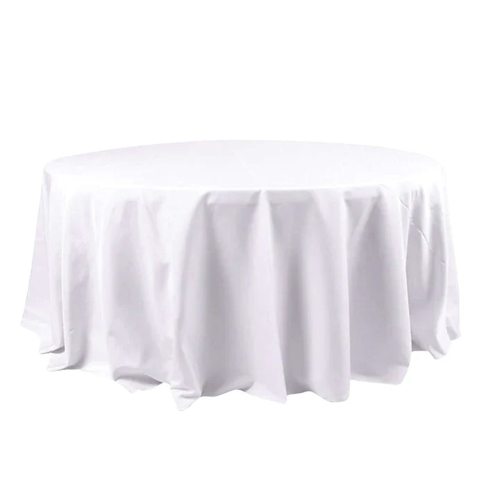Sized at (size") to fit large round tables, it offers ample coverage and makes a stunning visual impact. The crisp white color adds elegance and flexibility, allowing you to coordinate with any theme or color palette. Whether your event calls for classic, modern, or romantic decor, this tablecloth will effortlessly enhance your overall aesthetic.